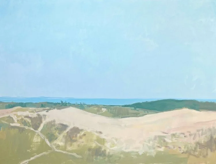 “Fleeting visual phenomena along the Lake Michigan shoreline and deep within its forests fuels ideas for my paintings. How the sun sparkles at the edge of a wood, or the sun or moon reflects light on the water, are occurrences I find compelling. They point to something in nature that is bigger than me.